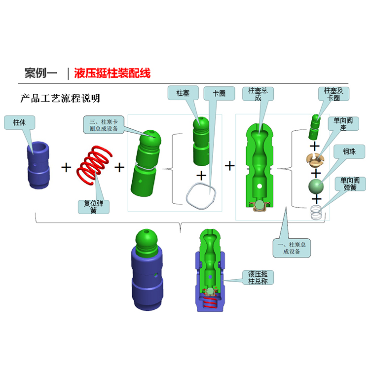 發動機是汽車的心臟,發動機氣門液壓挺柱可以說是汽車發動機重要的零部件之一。發動機氣門液壓挺柱自動裝配線是全自動生產線,全自動完成汽車 挺柱零配件裝配檢測、柱塞上料、組裝、打標、下料。