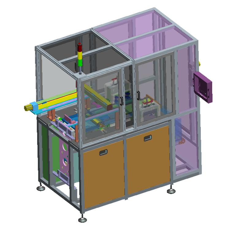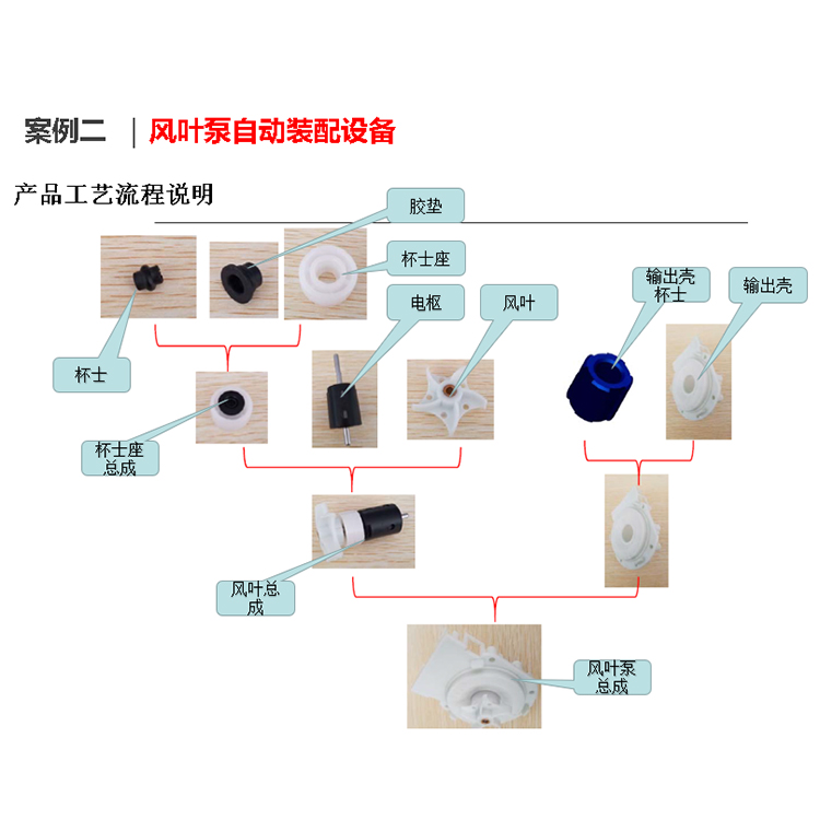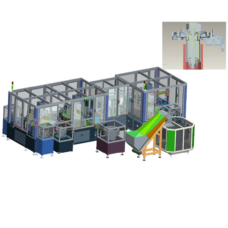 該設備自動完成風葉泵的自動化裝配,設備配備了杯士上料噴油、O型圈上料噴油、杯士座上料噴油、杯士組件壓裝及高度檢測;電樞上料及噴油、風葉上料及壓裝、風葉高度檢測、電樞及風葉組件充磁;輸出殼上料及噴油、輸出殼杯士壓裝及高度檢測,風葉組件及輸出殼壓裝,最后通過高度檢測及CCD檢測自動判定良品與不良品。合格產(chǎn)品自動輸送到成品盤。