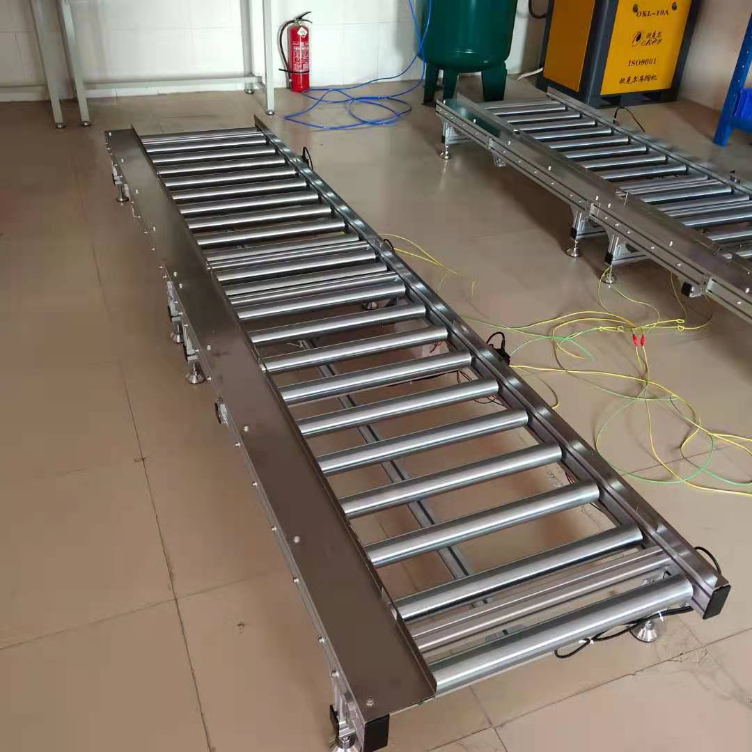 該滾筒線采用直流24V無刷電機內置于滾筒內,節省安裝空間,1根電動輥筒可帶動多條無動力滾筒。同時輥筒可根據需要分區啟動/停止,在有物料通過時電動輥筒才啟動節約能源50%以上;